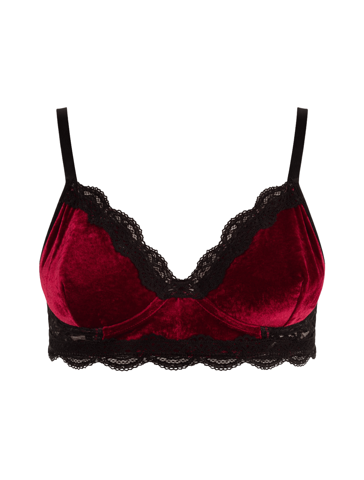 - Velvet bralette with lace trim details